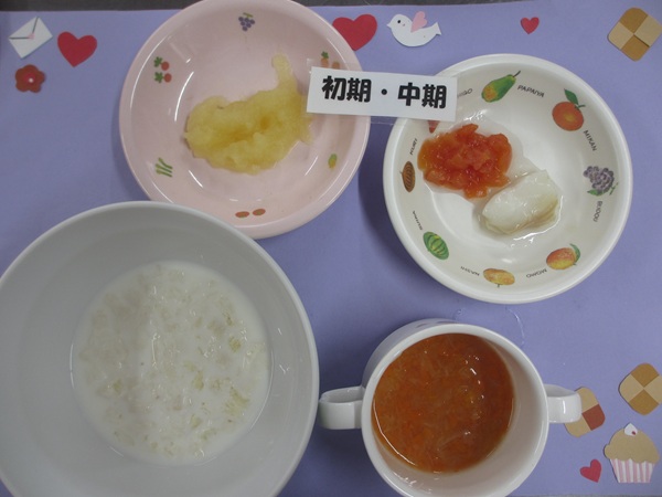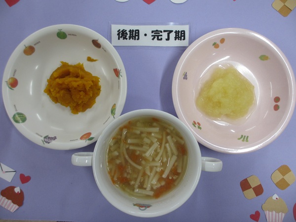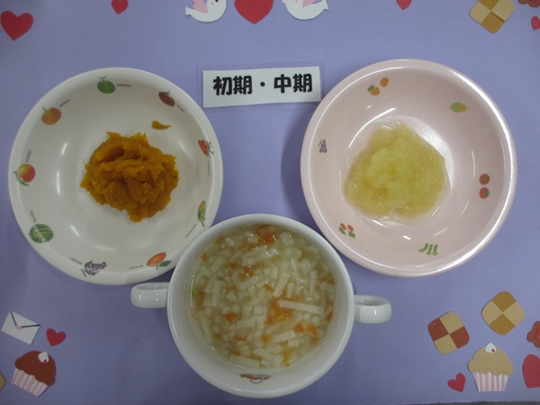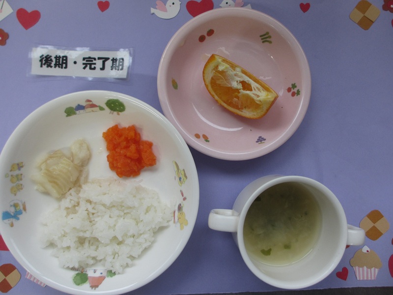 2/25(水)おかゆ 白身魚のとろとろ煮 人参のやわらか煮 スープ フルーツ