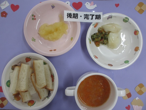 2/24(火)パンがゆ 白身魚のとろとろ煮 トマト煮 スープ フルーツ