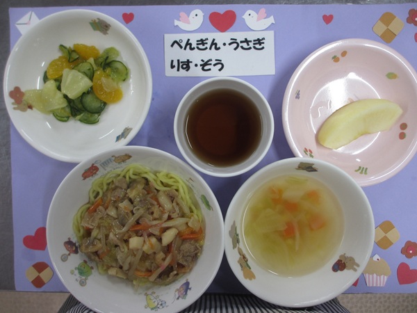 五目あんかけ焼きそば ハワイアンサラダ スープ フルーツ