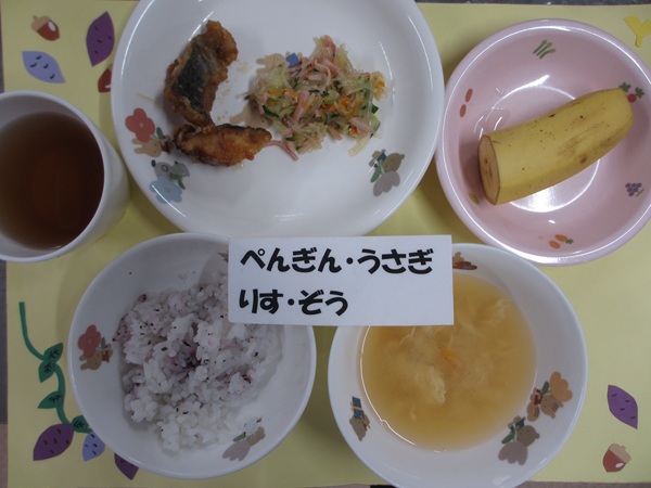 9/9(火)ゆかりご飯 さわらの蒲焼き 中華風酢の物 味噌汁 フルーツ