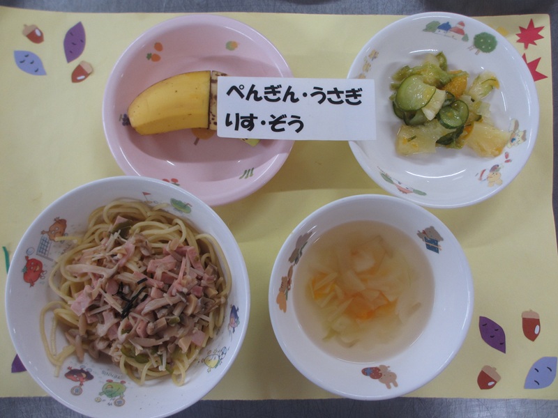 9/11(木)きのこの和風スパゲティ ハワイアンサラダ スープ フルーツ