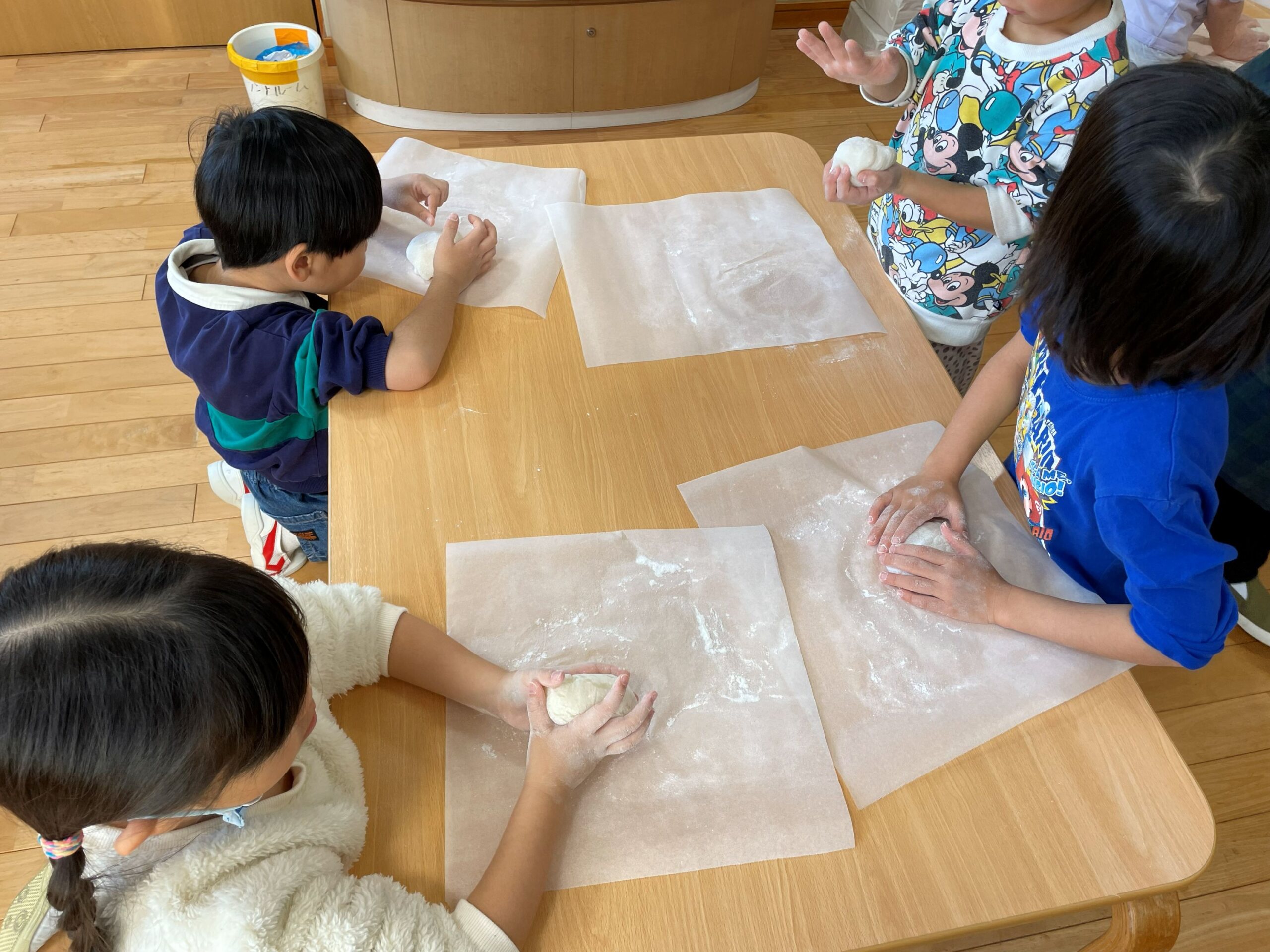 保育園のお釈迦様にお供えする鏡餅をみんなに作ってもらいました。