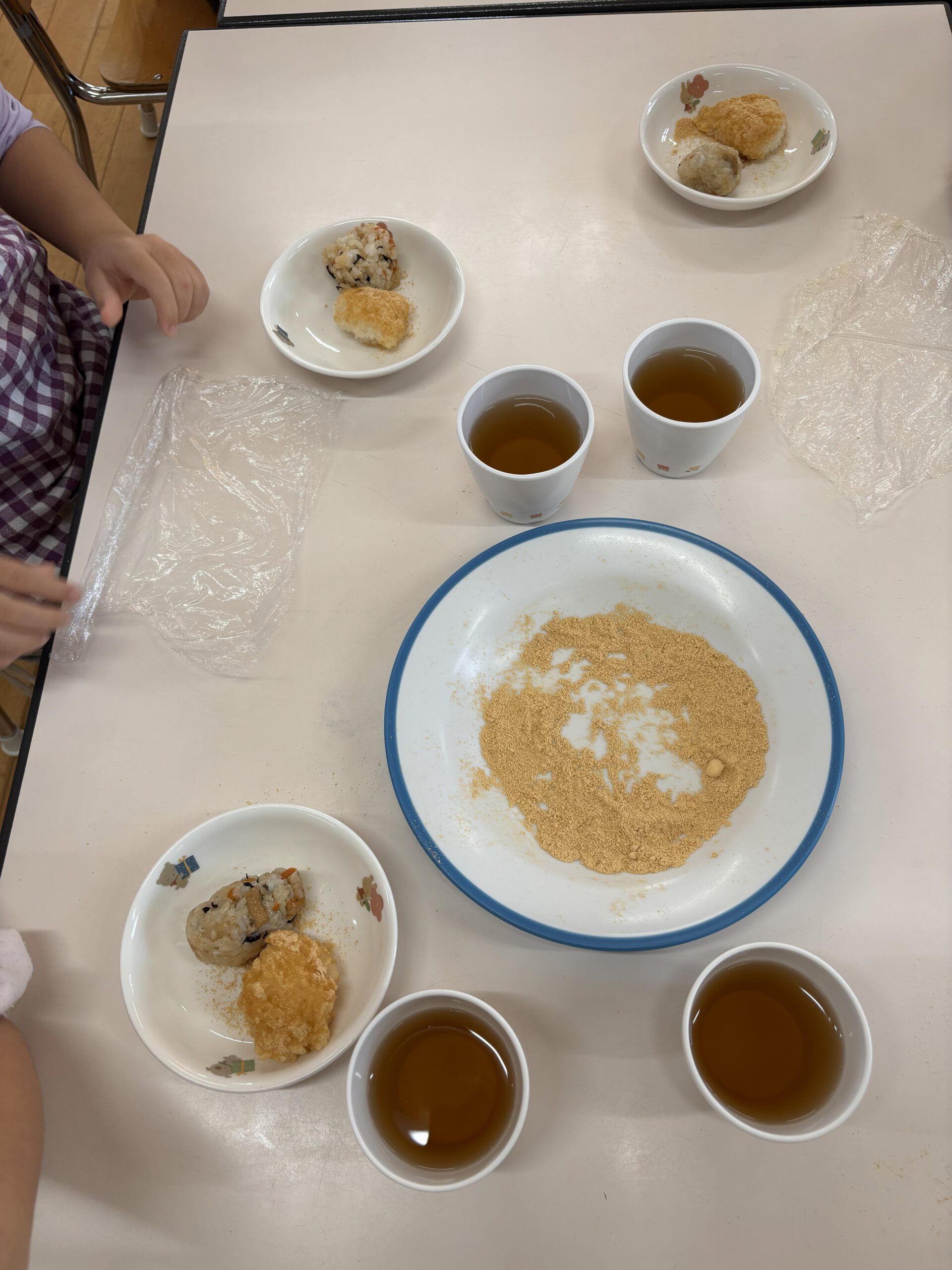 この日のおやつは、ひじきおにぎりときな粉おはぎです。