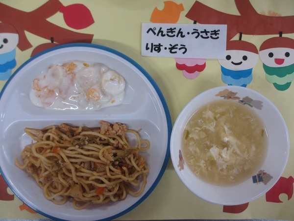 11/10(月)煮込みうどん かぼちゃの煮つけ フルーツ