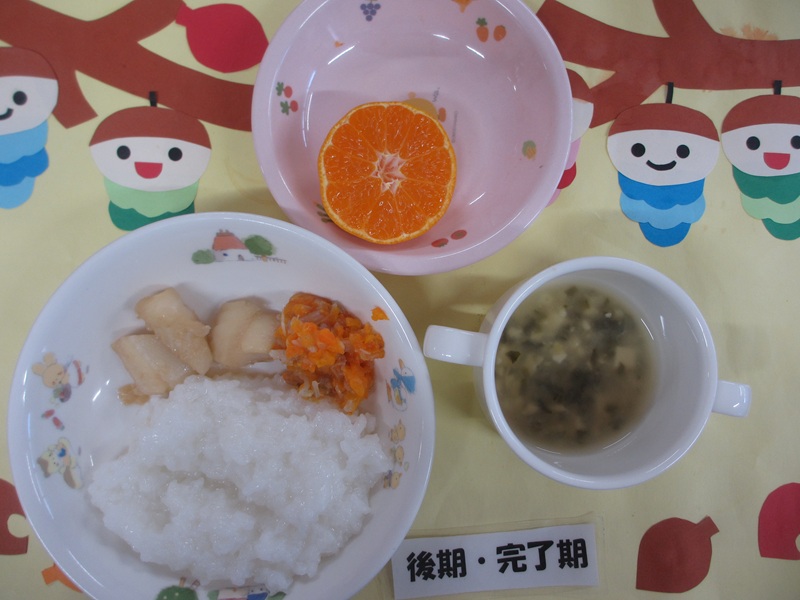11/14(金)軟飯 白身魚の煮つけ 白菜のお浸し 味噌汁 フルーツ