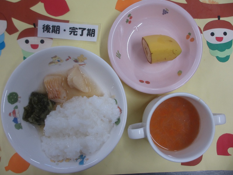 11/25(火)軟飯 挽肉煮 野菜サラダ スープ フルーツ