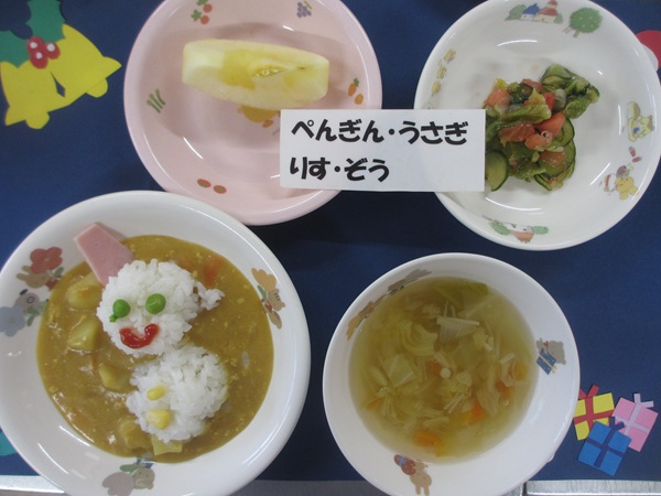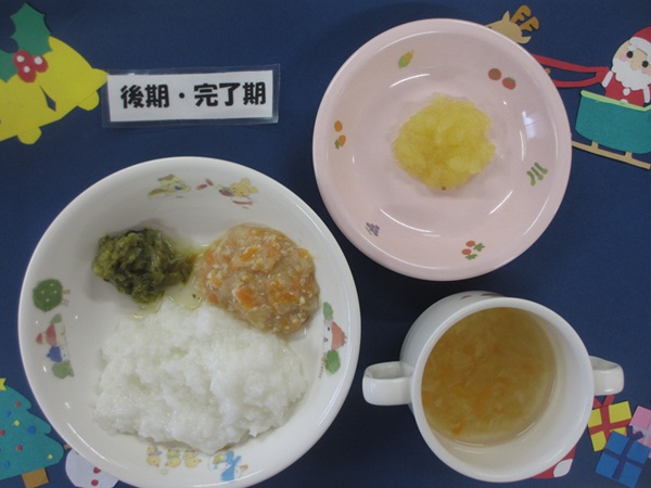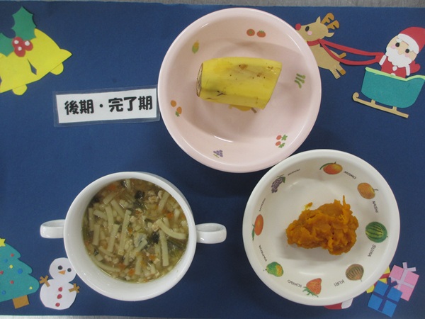12/1(月)軟飯 肉じゃが 野菜サラダ スープ りんご