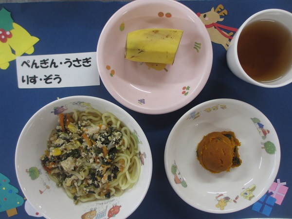 12/2(火)煮込みうどん かぼちゃの煮つけ バナナ
