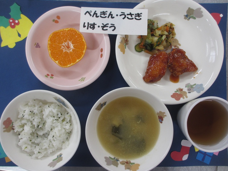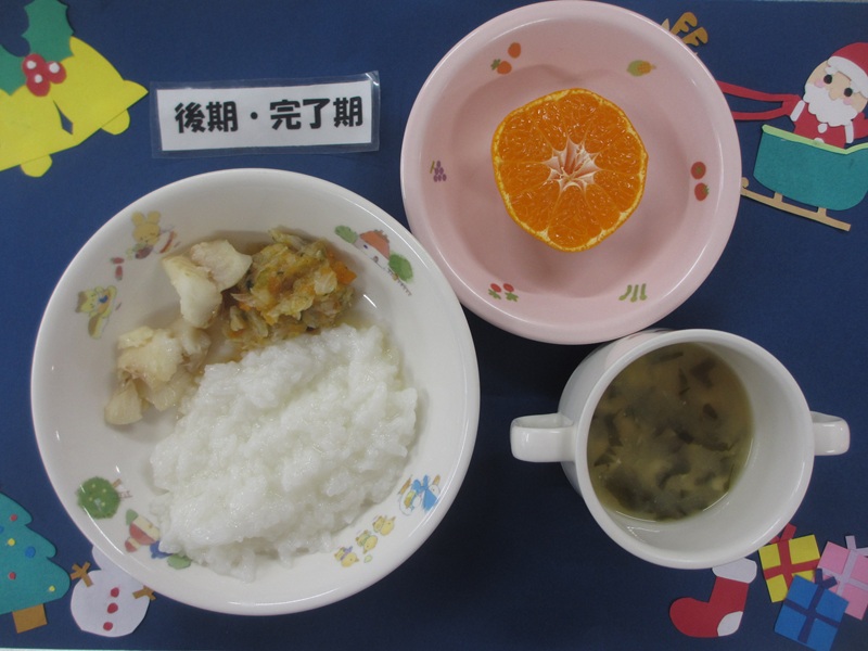 12/3(水)軟飯 白身魚の煮つけ 野菜煮 味噌汁 みかん
