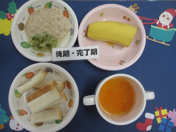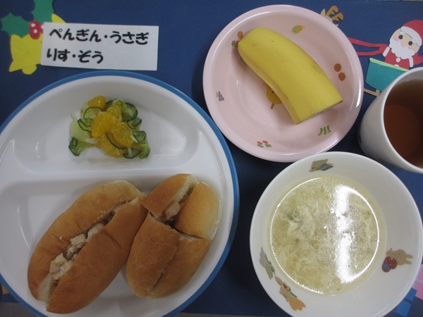 12/4(木)食パン 挽肉煮 キャベツサラダ スープ バナナ