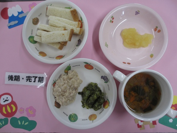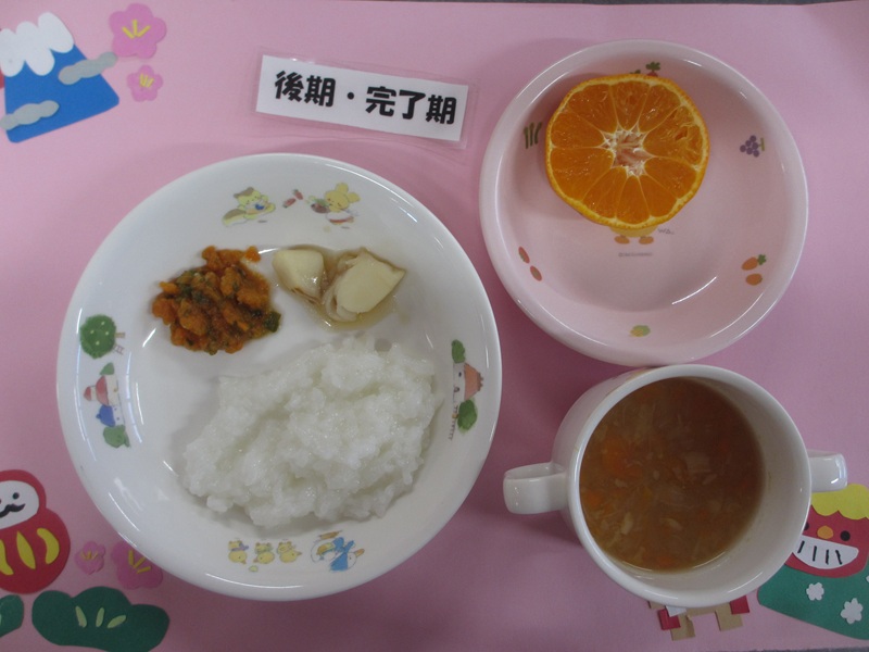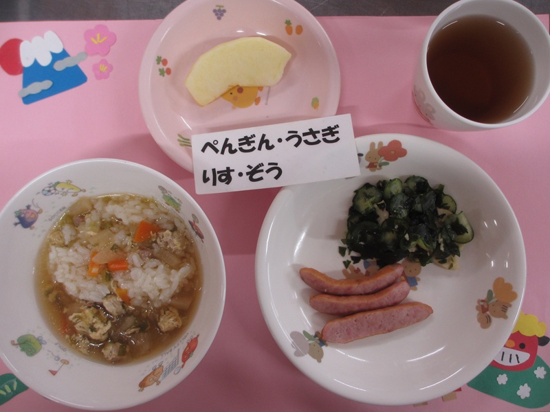 七草風がゆ きゅうりの酢の物 ウィンナー フルーツ