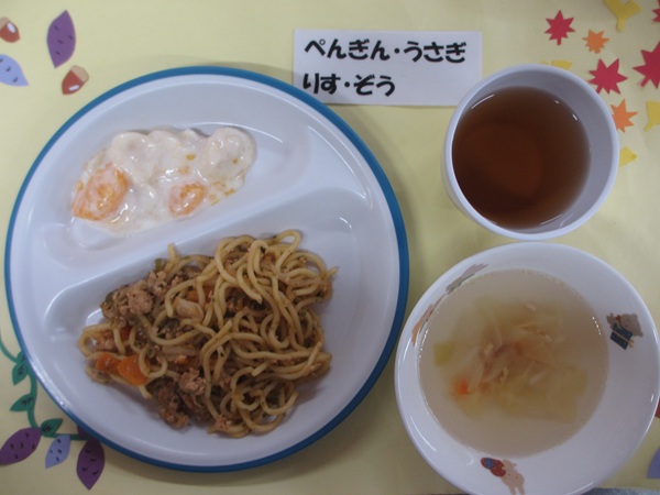 9/29(月)煮込みうどん かぼちゃの甘煮 フルーツ