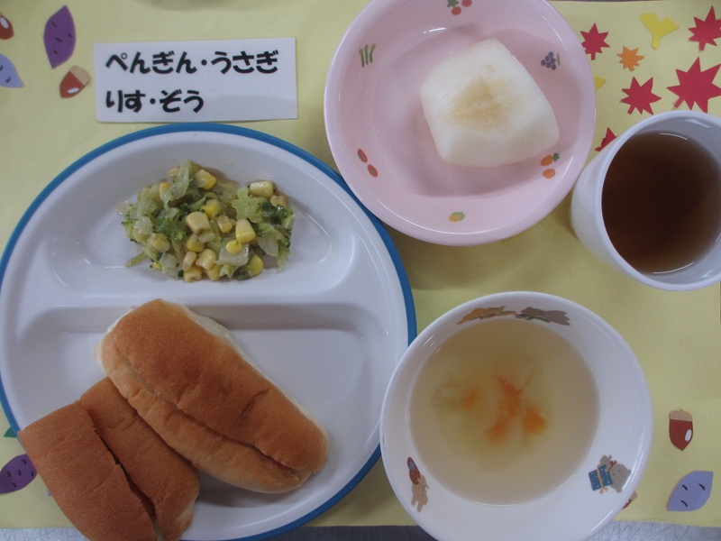 ミニホットドッグ イタリアンサラダ スープ フルーツ