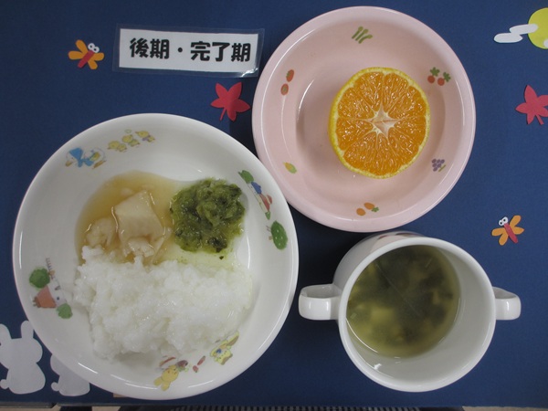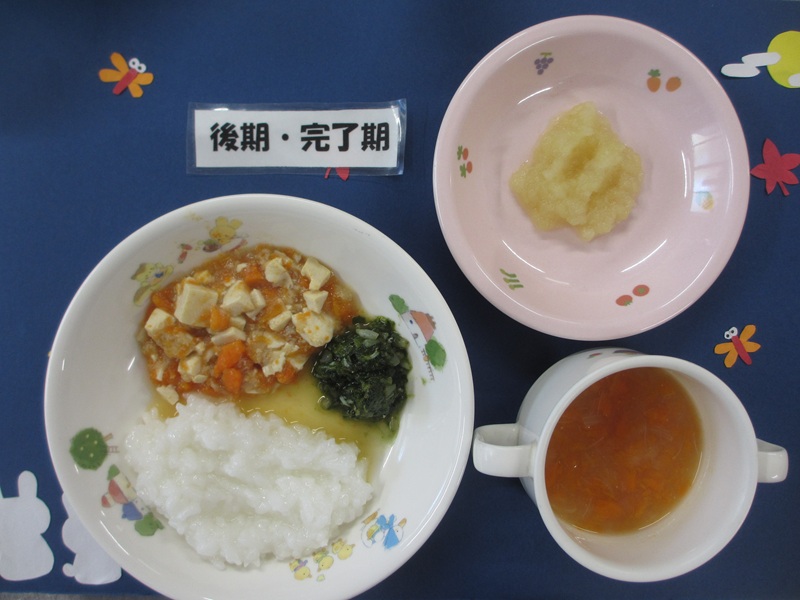 10/2(木)軟飯 豆腐煮 ほうれん草のお浸し 味噌汁 フルーツ