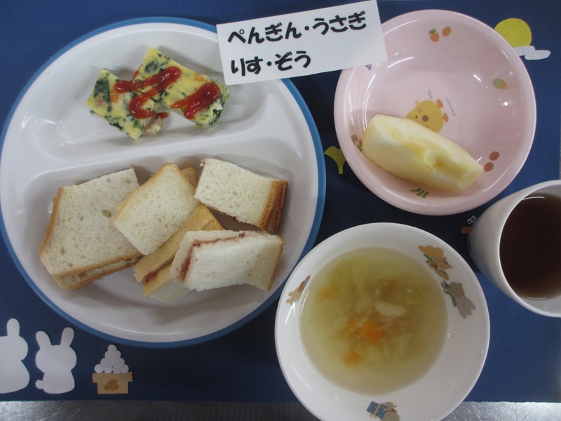二色サンド スパニッシュオムレツ スープ フルーツ