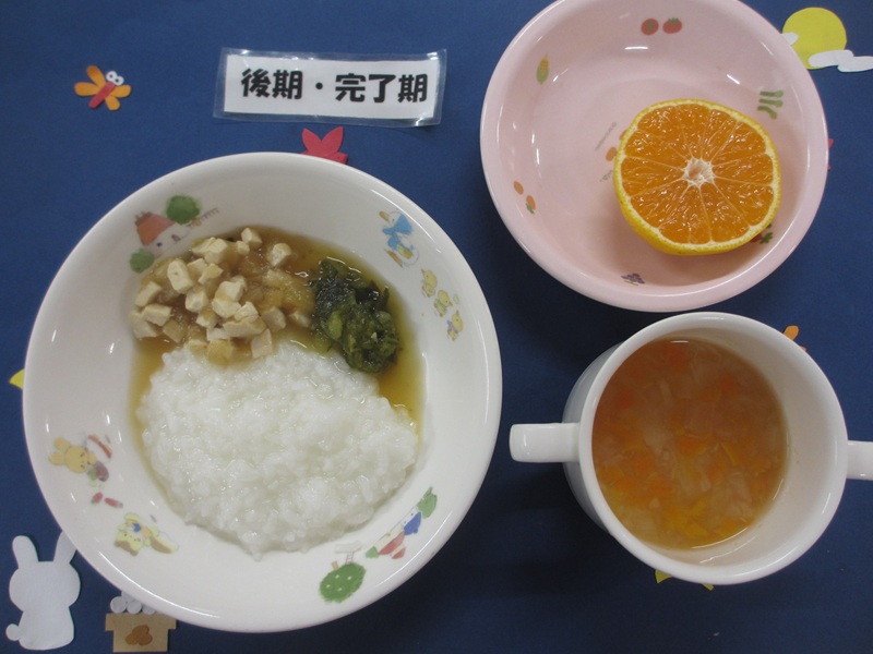 10/24(金)軟飯 豆腐煮 ほうれん草のお浸し 味噌汁 フルーツ