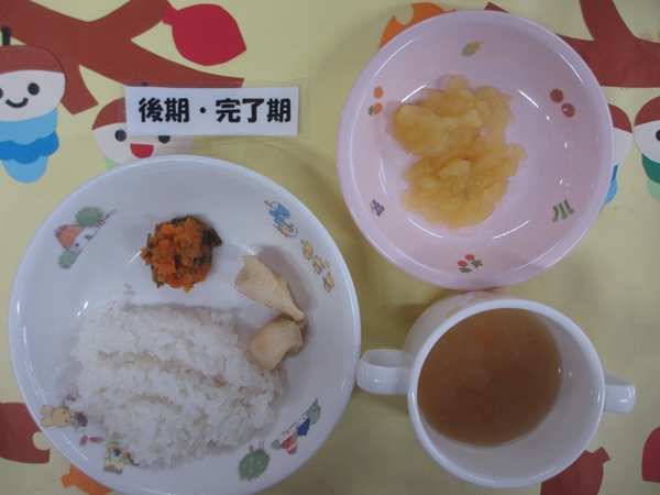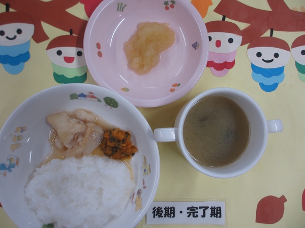 11/5(水)軟飯 白身魚の煮つけ きゅうりサラダ 味噌汁 フルーツ