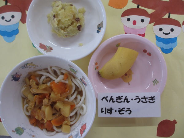 11/6(木)煮込みうどん さつま芋とりんごの重ね煮 フルーツ
