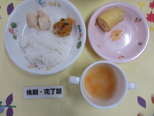 9/9(火)軟飯 白身魚の煮つけ キャベツのサラダ 味噌汁 フルーツ