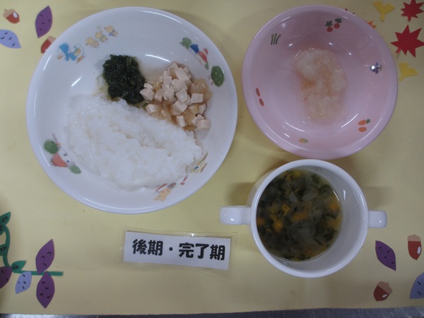 9/12(金)軟飯 豆腐煮 ほうれん草のお浸し 味噌汁 フルーツ
